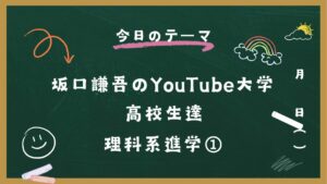 現在、番組スポンサー中のラジオ番組「午後の怜司(17:00~)」ならびに「笹川怜司のBGM(18:00~)」(Kyusyu Osaka FM HOPE、毎週金曜日 17:00~19:00)にゲスト出演致します。 「午後の […] - 『坂口謙吾のYouTube大学⑫ 高校生達 理科系進学(全7回)』を公開致しました。